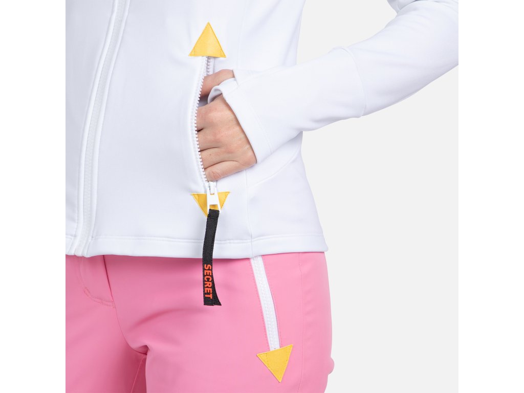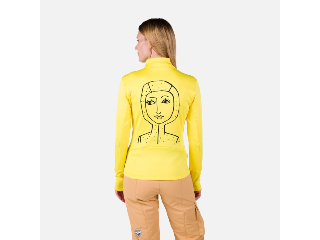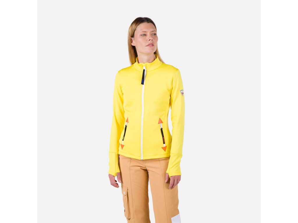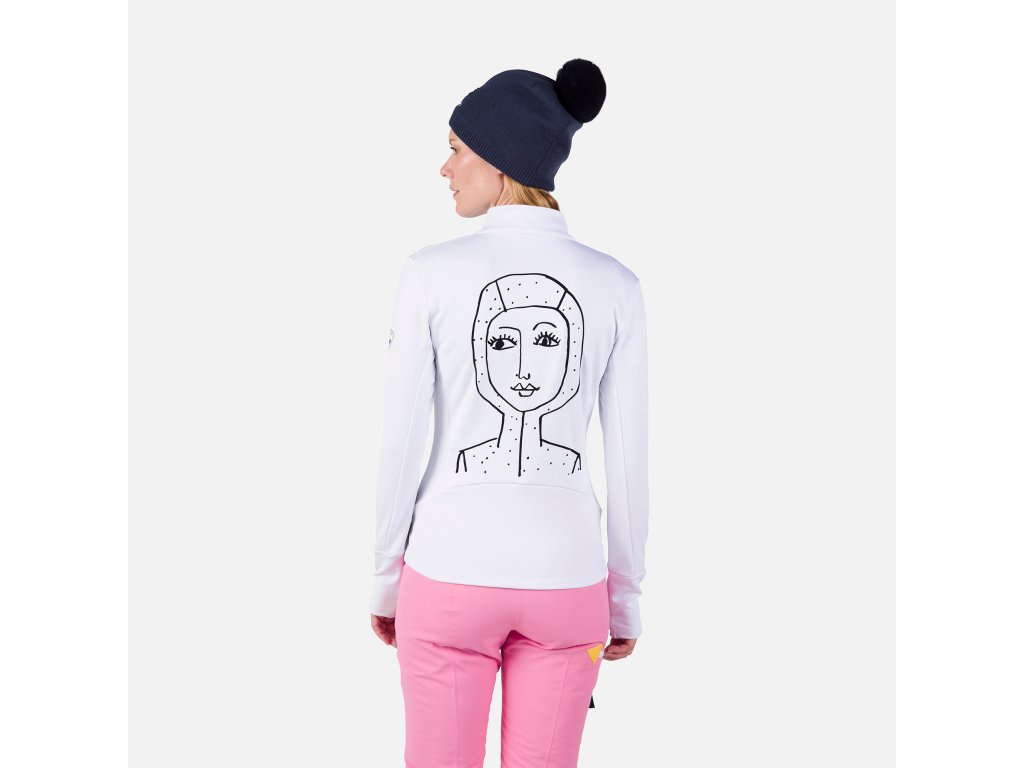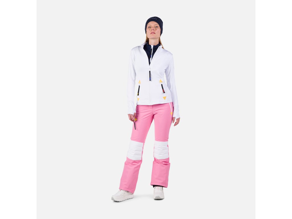Lyžujte v elegantním stylu JCC. Dámská bunda Rossignol Climi je ideální střední vrstva, kterou můžete nosit samostatně nebo pod kombinézou, a má úzký střih, který kopíruje kontury těla, a navíc je hřejivá a pružná. Výrazné popové barvy a grafika na zádech spojují umění, módu a vysokohorský život.