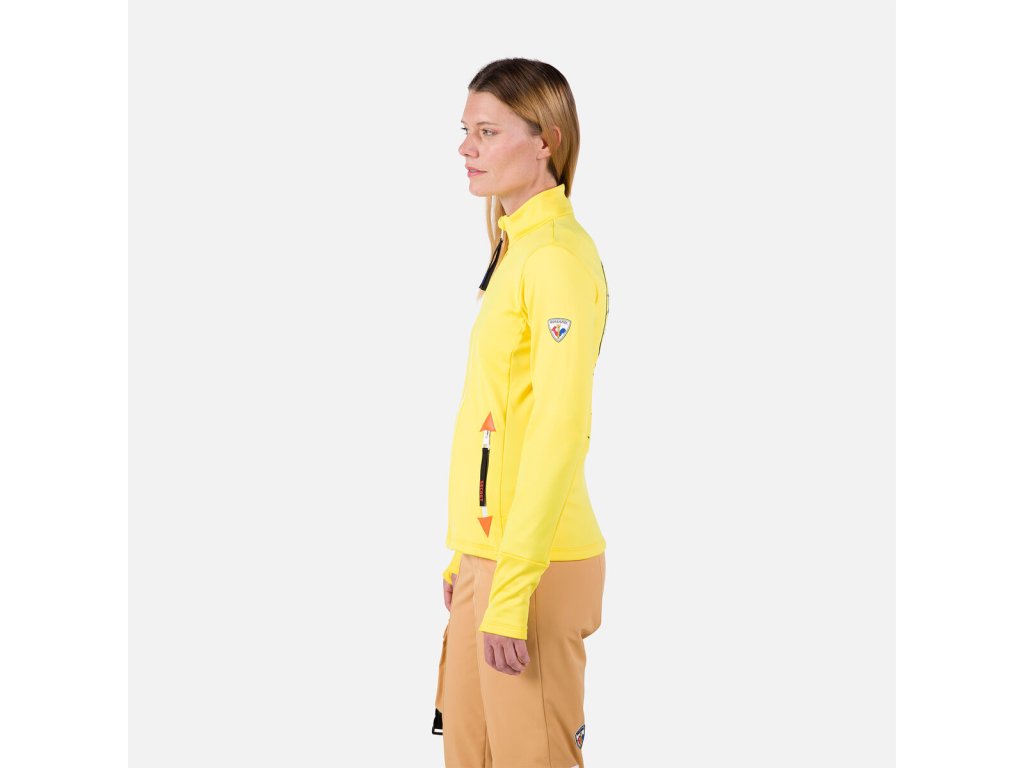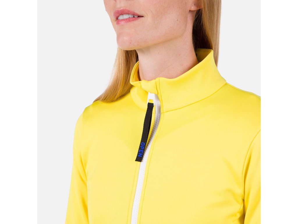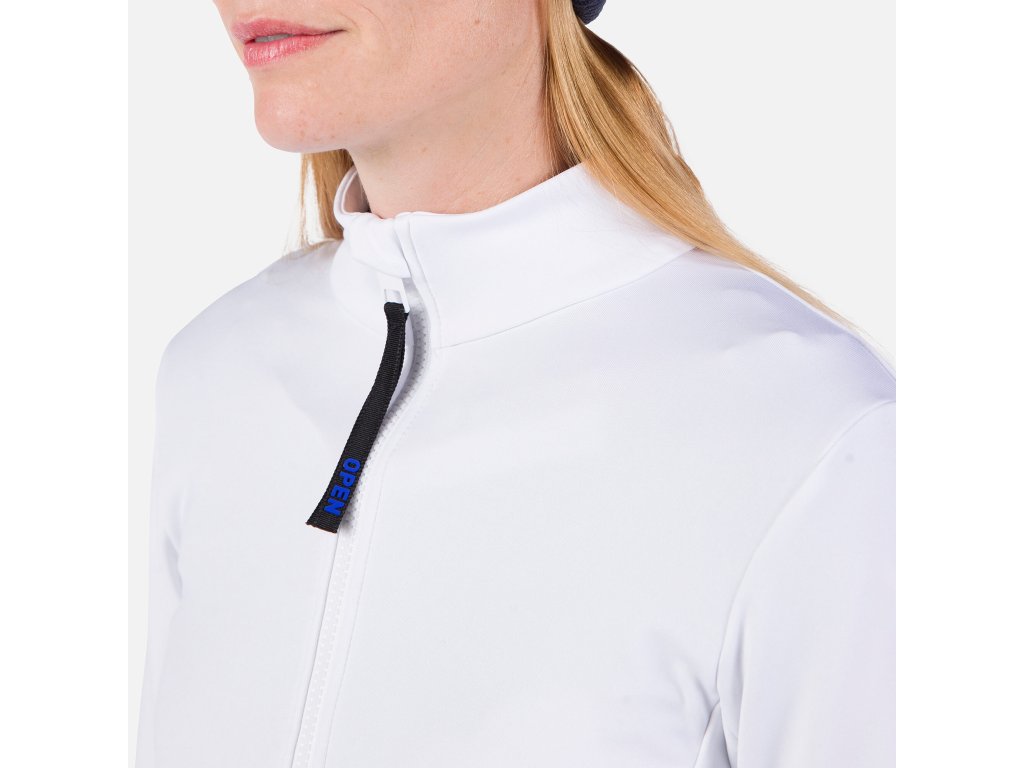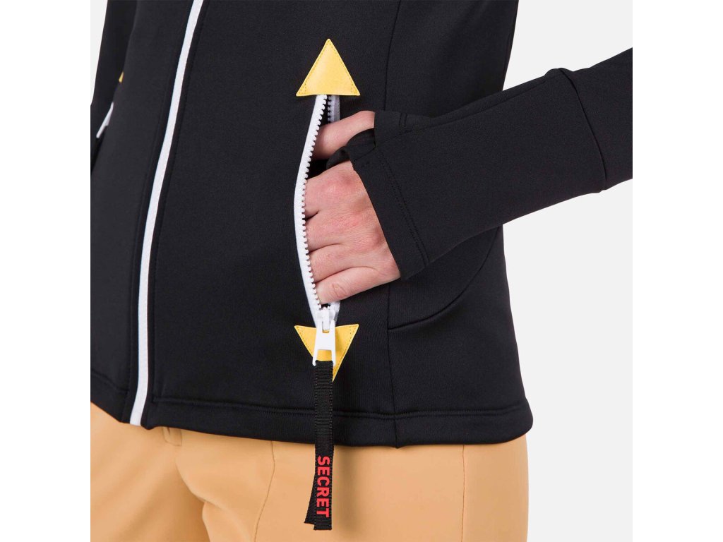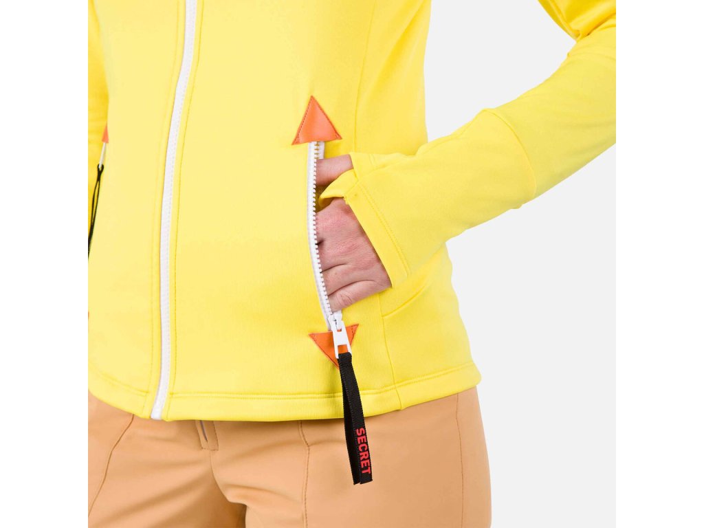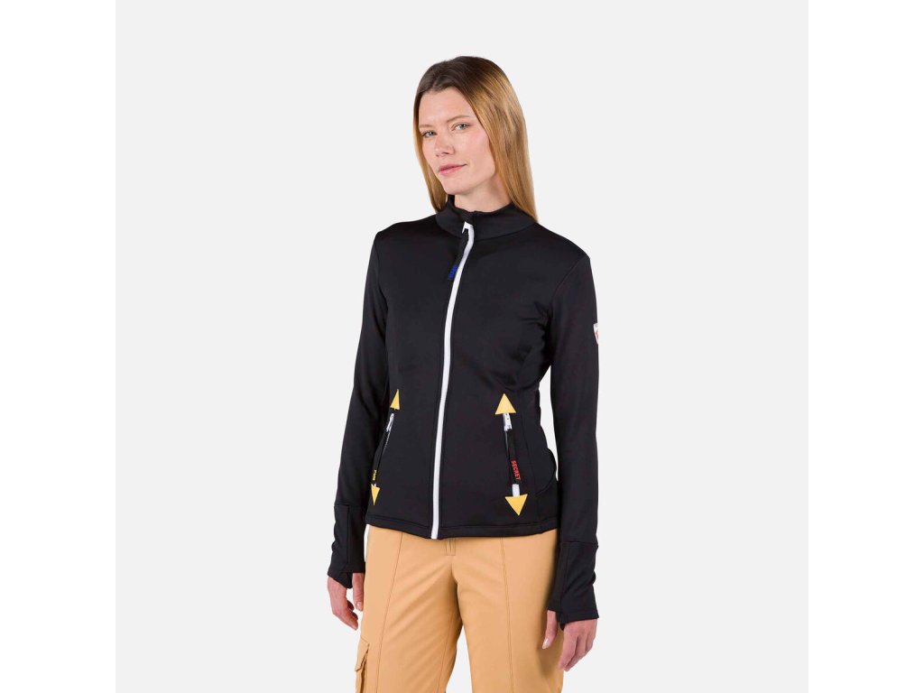 Lyžujte v elegantním stylu JCC. Dámská bunda Rossignol Climi je ideální střední vrstva, kterou můžete nosit samostatně nebo pod kombinézou, a má úzký střih, který kopíruje kontury těla, a navíc je hřejivá a pružná. Výrazné popové barvy a grafika na zádech spojují umění, módu a vysokohorský život.