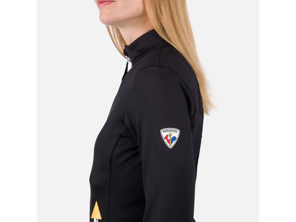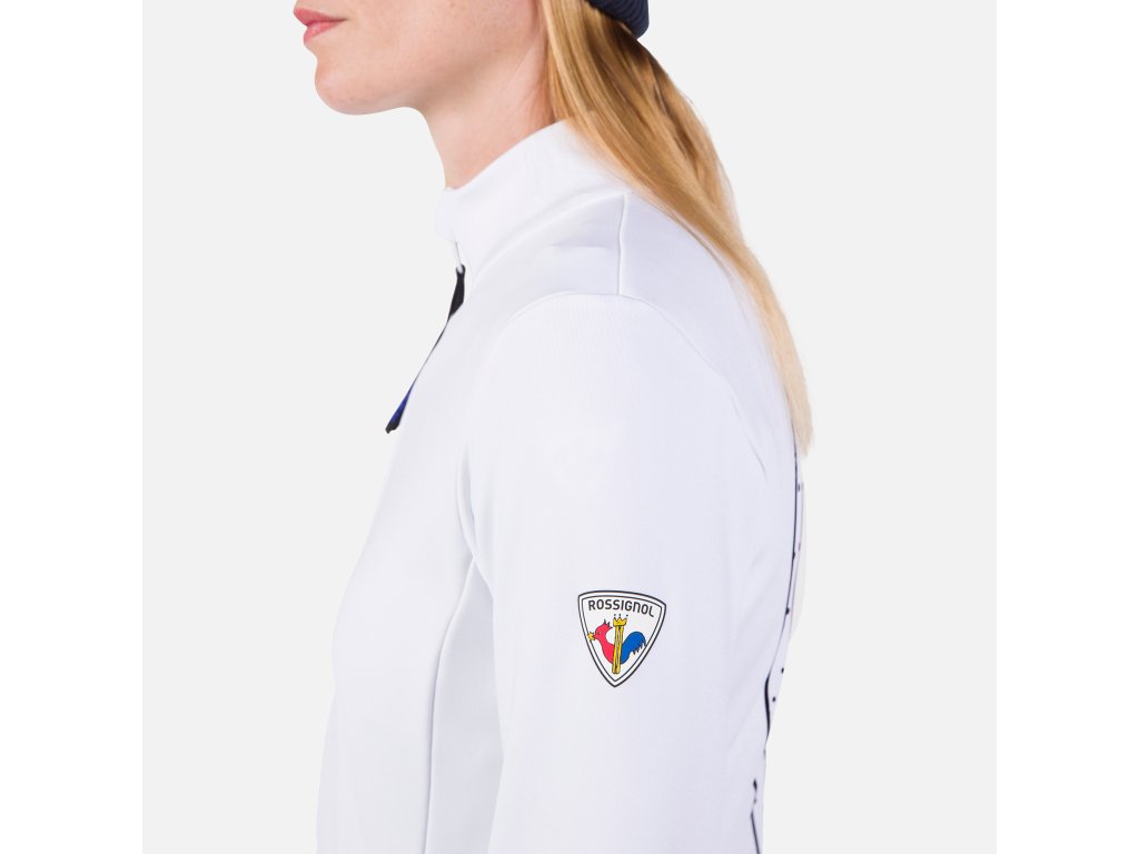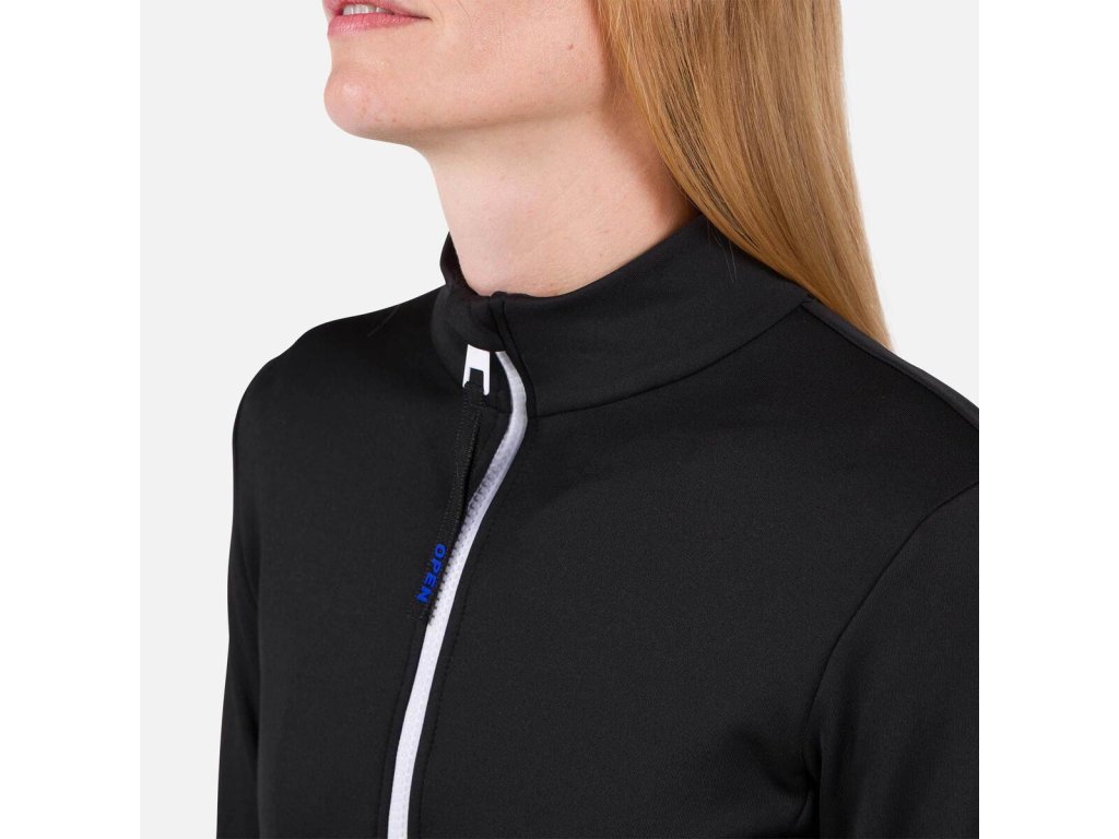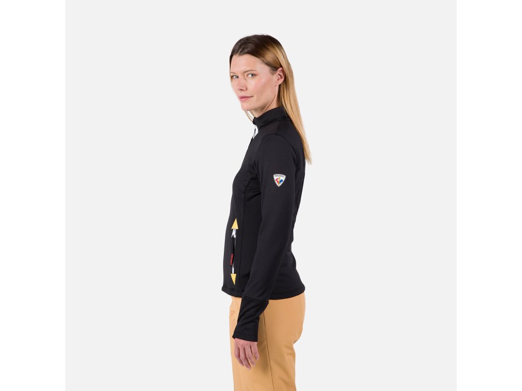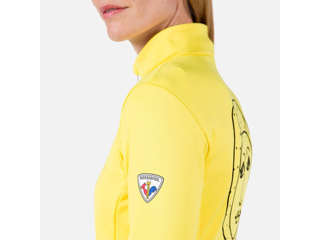 Lyžujte v elegantním stylu JCC. Dámská bunda Rossignol Climi je ideální střední vrstva, kterou můžete nosit samostatně nebo pod kombinézou, a má úzký střih, který kopíruje kontury těla, a navíc je hřejivá a pružná. Výrazné popové barvy a grafika na zádech spojují umění, módu a vysokohorský život.