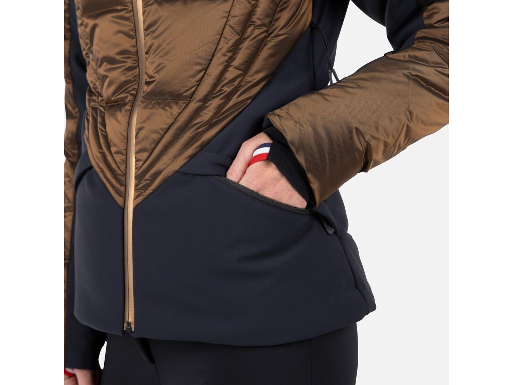 Dámská lyžařská bunda Rossignol Direttissima Vám poskytne teplo a flexibilitu, abyste se mohli plně soustředit na lyžování. Bunda kombinuje stylový matný softshell s lesklou látkou a odnímatelnou kapuci s umělou kožešinou, která umožňuje měnit vzhled podle potřeby. Prémiové vysoké peří udrží teplo, zatímco voděodolná a prodyšná membrána vás ochrání před vlhkým počasím.