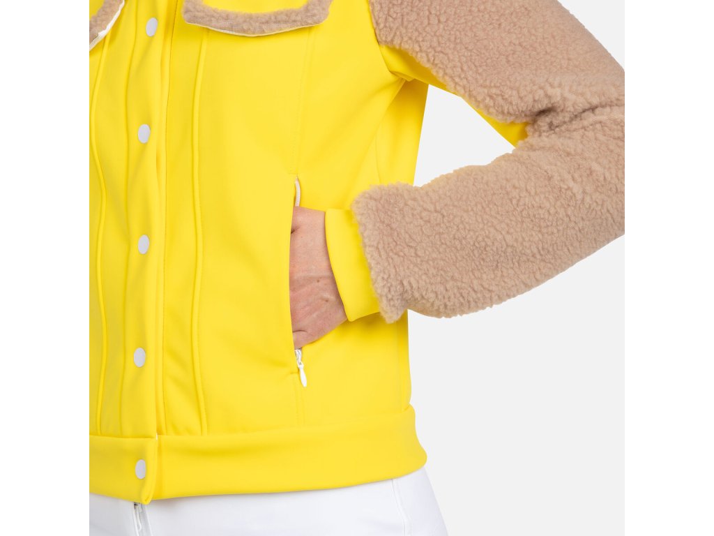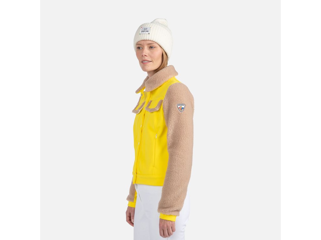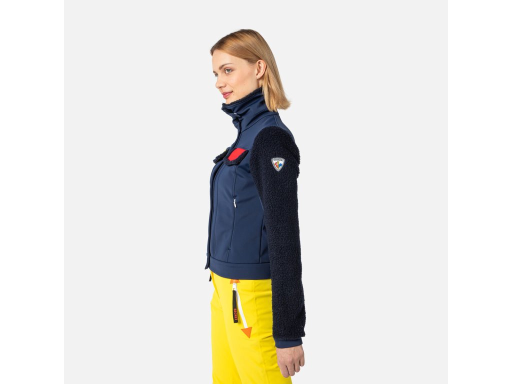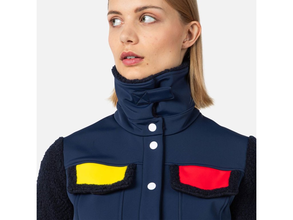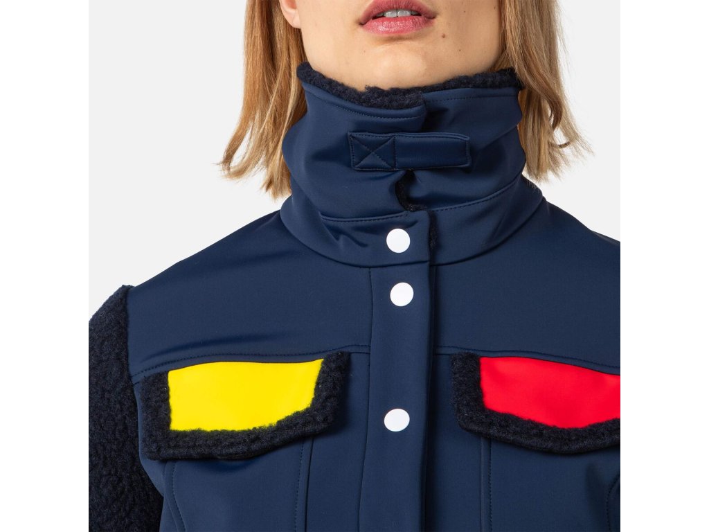 V kreativní vizi Jeana-Charlese de Castelbajaca se střetává horský život s městským stylem. Dámská bunda Rossignol Softshell Fleecy Jacket rozzáří Váš après ski look výraznými popovými barvami. Voděodolné a prodyšné krytí se při pohybu natáhne a udrží sněhové vánice na uzdě. Plyšové fleecové rukávy, límec a podšívka dodávají teplo a dělají z ní ideální vrstvu na každý den.