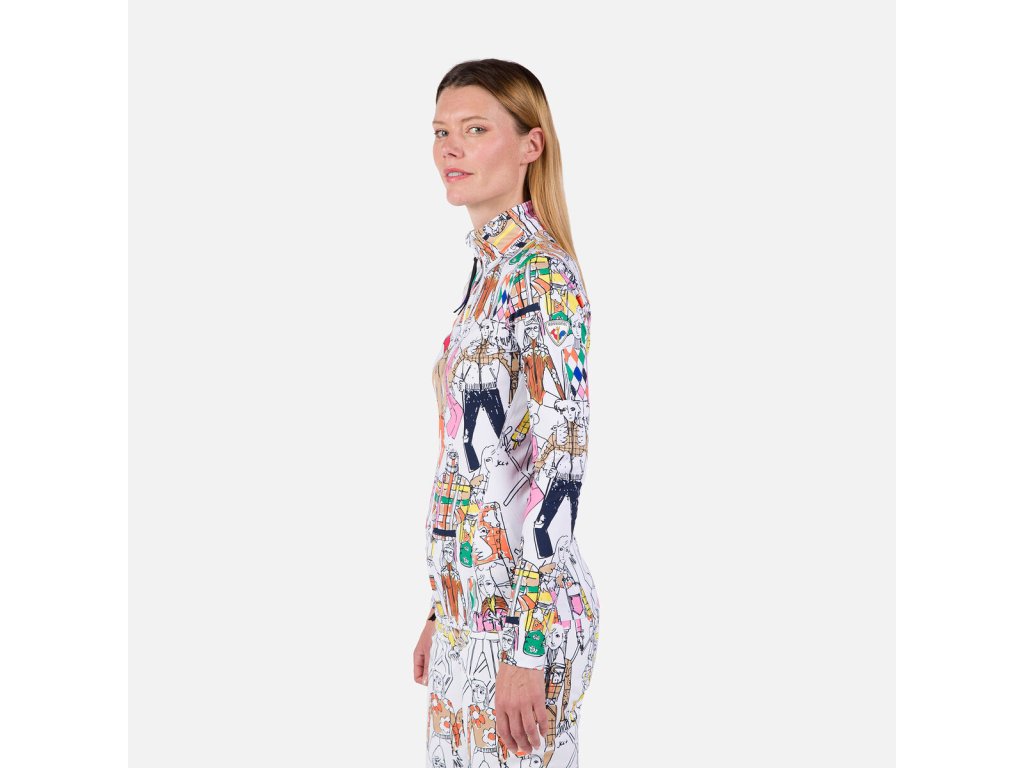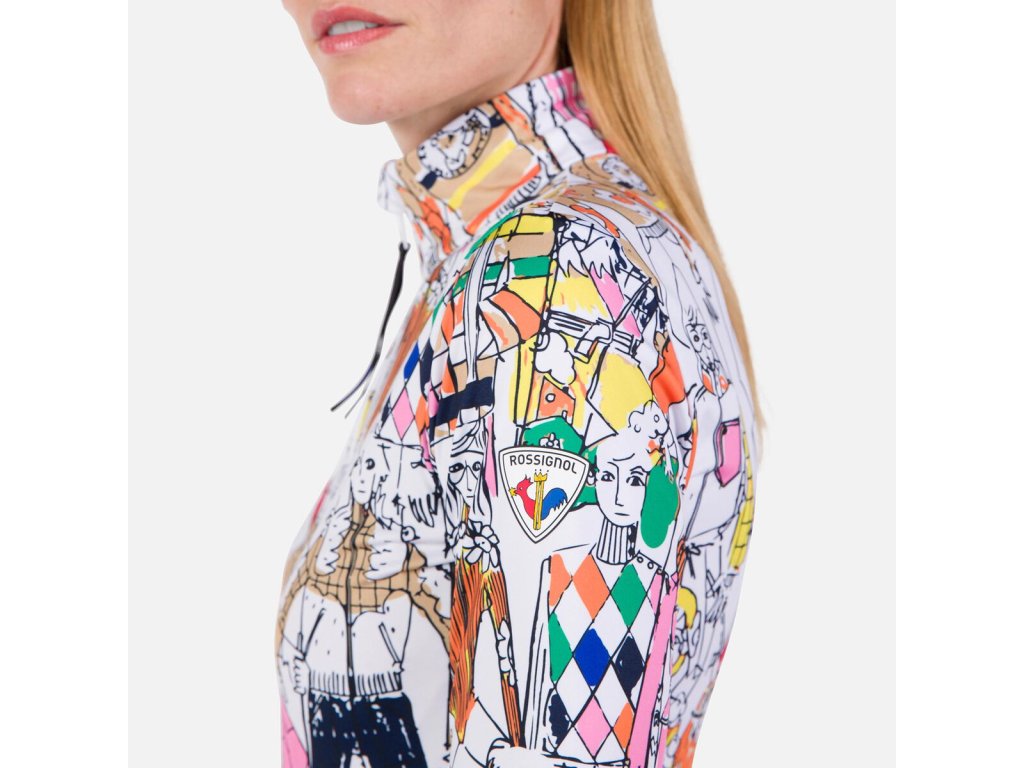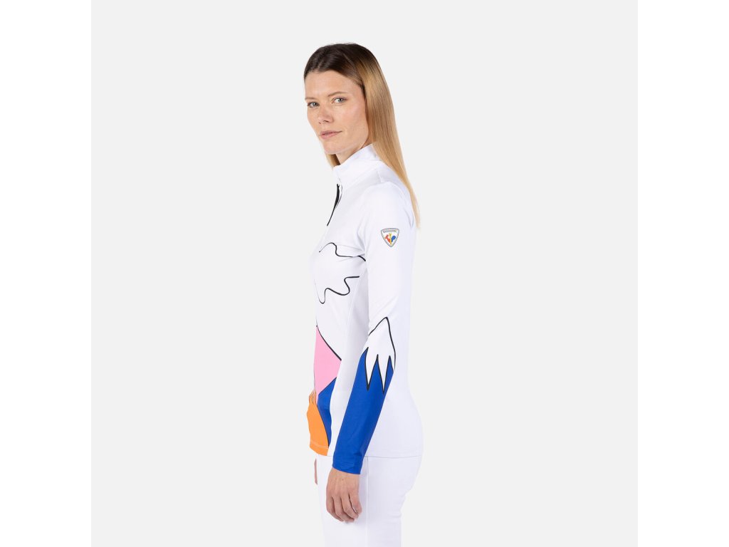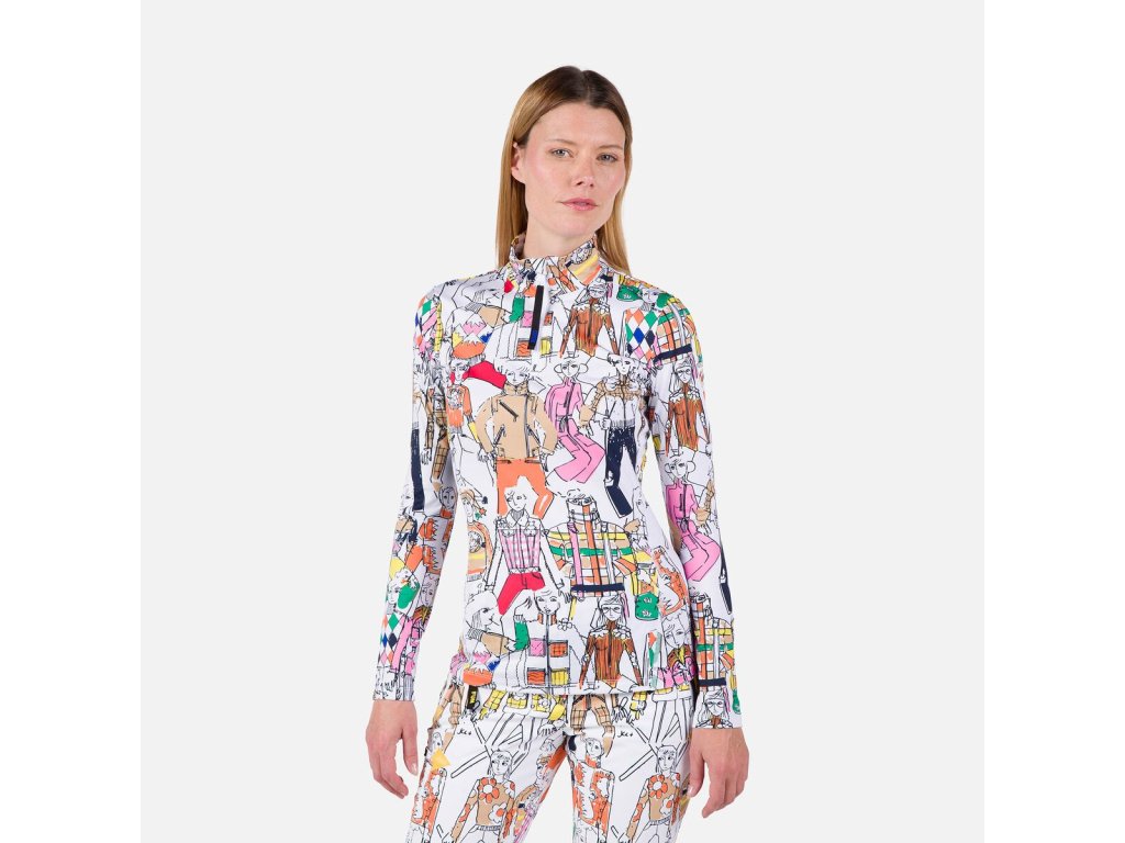 Vstupte do elegantního pop-artového vesmíru, který vymyslel francouzský módní návrhář Jean-Charles de Castelbajac. Dámský top Rossignol Booster Half-Zip Top v živých barvách a grafice vnese do vašeho lyžařského dne styl JCC.