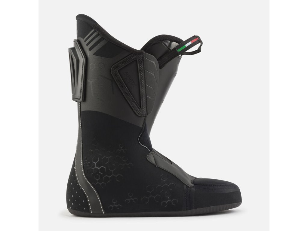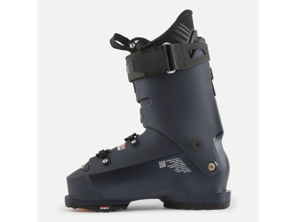 Skelet o šíři 100 mm a Auxetic tepelně upravovatelná botička pro komfortní pocit a ideální přizpůsobení k tvaru nohy. Suspension Blade-lišta spojuje horní skelet se spodním pro přesný přenos síly do lyží.