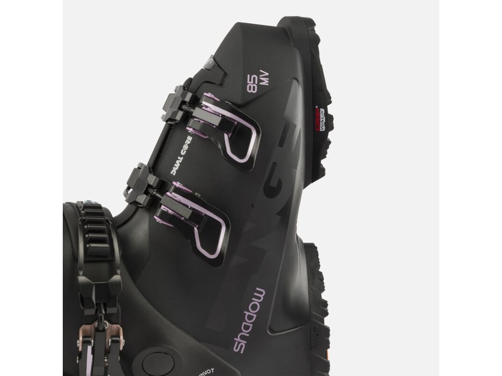 Shadow je první skiboot s asistovaným systémem výkonu a odpružení. Tento systém, kombinovaný dvěma inovacemi: dvojitým čepem a odpruženou lopatkou vám umožní dostat více energie, než vložíte. Jde o přenos výkonu s menší námahou. Získáme 26 % odrazu, s využitím méně energie a fyziologických schopností.