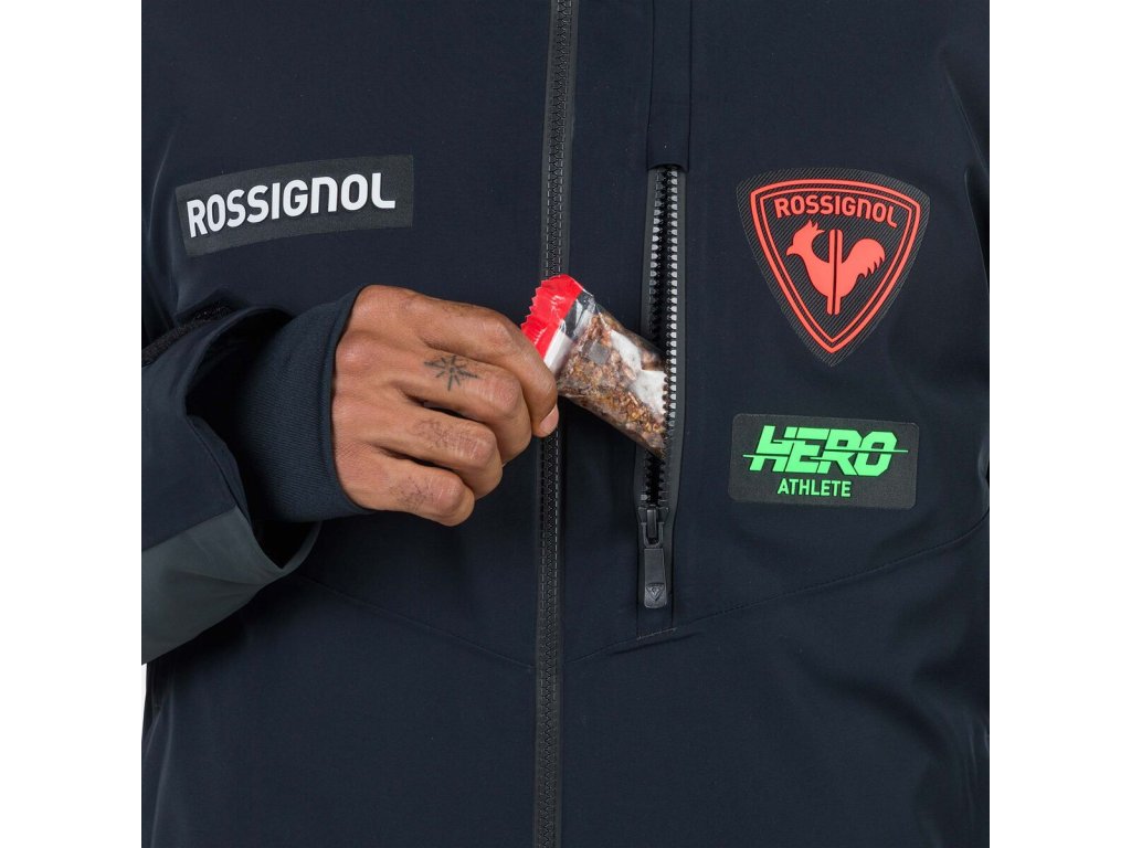 Umělecké prvky: Potisk Rossignol na levé straně - Velká neonově červená nášivka kohouta na levé straně hrudi - Nášivka ROSSIGNOL na pravé straně hrudi - Nášivka HERO na levé straně hrudi.