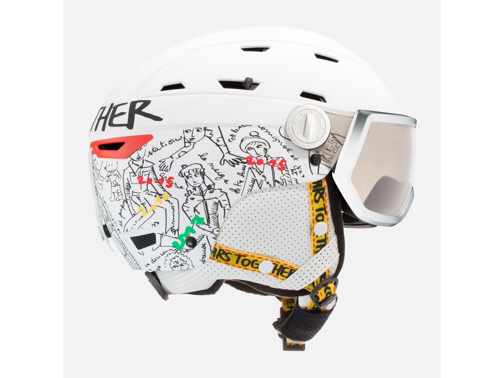 Viditelnost a pokrytí nárazu jsou hlavními prioritami lyžařské helmy Allspeed Visor IMPACTS JCC. Vyznačuje se naší technologií IMPACTS s tvrdou skořepinou a pěnou pro více nárazů pro zvýšenou všestrannou odolnost bez kompromisů ohledně střihu, hmotnosti nebo stylu. Vestavěné hledí obsahuje fotochromatickou čočku, která se automaticky přizpůsobuje aktuálním světelným podmínkám. Systém nastavení Dial R-Fit vám umožní doladit střih, zatímco nastavitelné větrací otvory vám umožní regulovat teplotu podle podmínek. Barevná grafika sdílí rozmarného ducha francouzského módního návrháře Jeana Charlese de Casterbajaca.