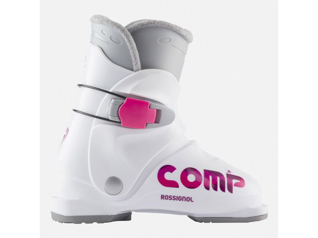 Dětské sjezdové boty Rossignol Comp J1 jsou pohodlné a jednoduché první lyžařské boty maličkých lyžařů. Zadní vstup poskytuje dostatečné otevření manžety a snadné obouvání nebo vyzouvání. Skelet s jednou přezkou rodiče dokáží rychle otevřít podle potřeby i na kopci.
