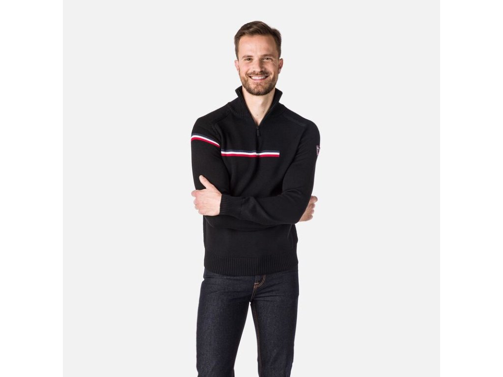 Klasický alpský styl a typické francouzské dědictví Rossignol udávají tón pánskému svetru Major Half-Zip. Směs merino dodává teplo na horách nebo ve městě. Vysoký límec lze nosit rozepnutý nebo se zipem až nahoru, aby se zabránilo chladu. Na jemném úpletu z merino vlny vynikají trikolorní pruhy inspirované francouzskou vlajkou.
